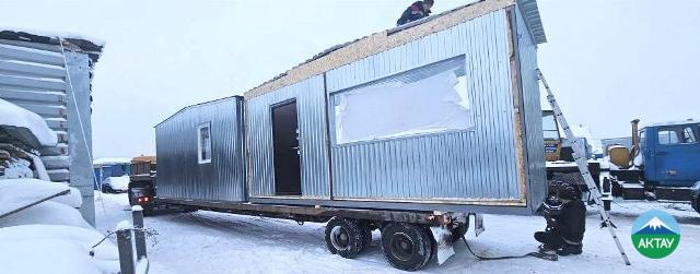Модули шириной 3 метра (длина до 12 метров) доставляются на трале с использованием крана .
