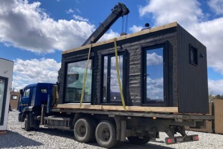Модули шириной 2.4 метра (длина до 7 метров) доставляются камаз-манипулятором,